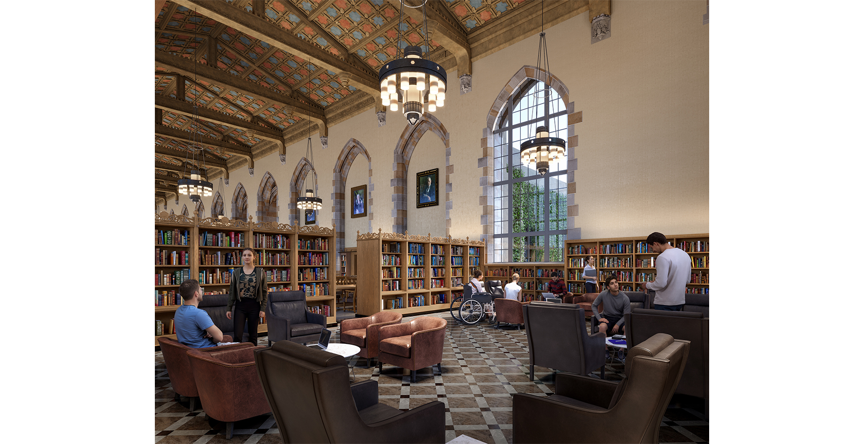 We are engaged for programming, design, and construction administration for select renovations to significant public spaces and building core elements. Spaces include historic reading rooms, lobby, lounge and gallery space, as well as the introduction of an elevator and replacement and modernization of all restroom facilities. These select renovations to historic spaces are currently under construction.