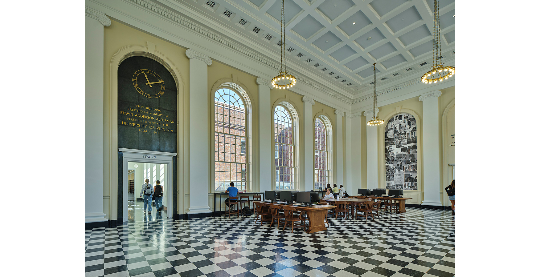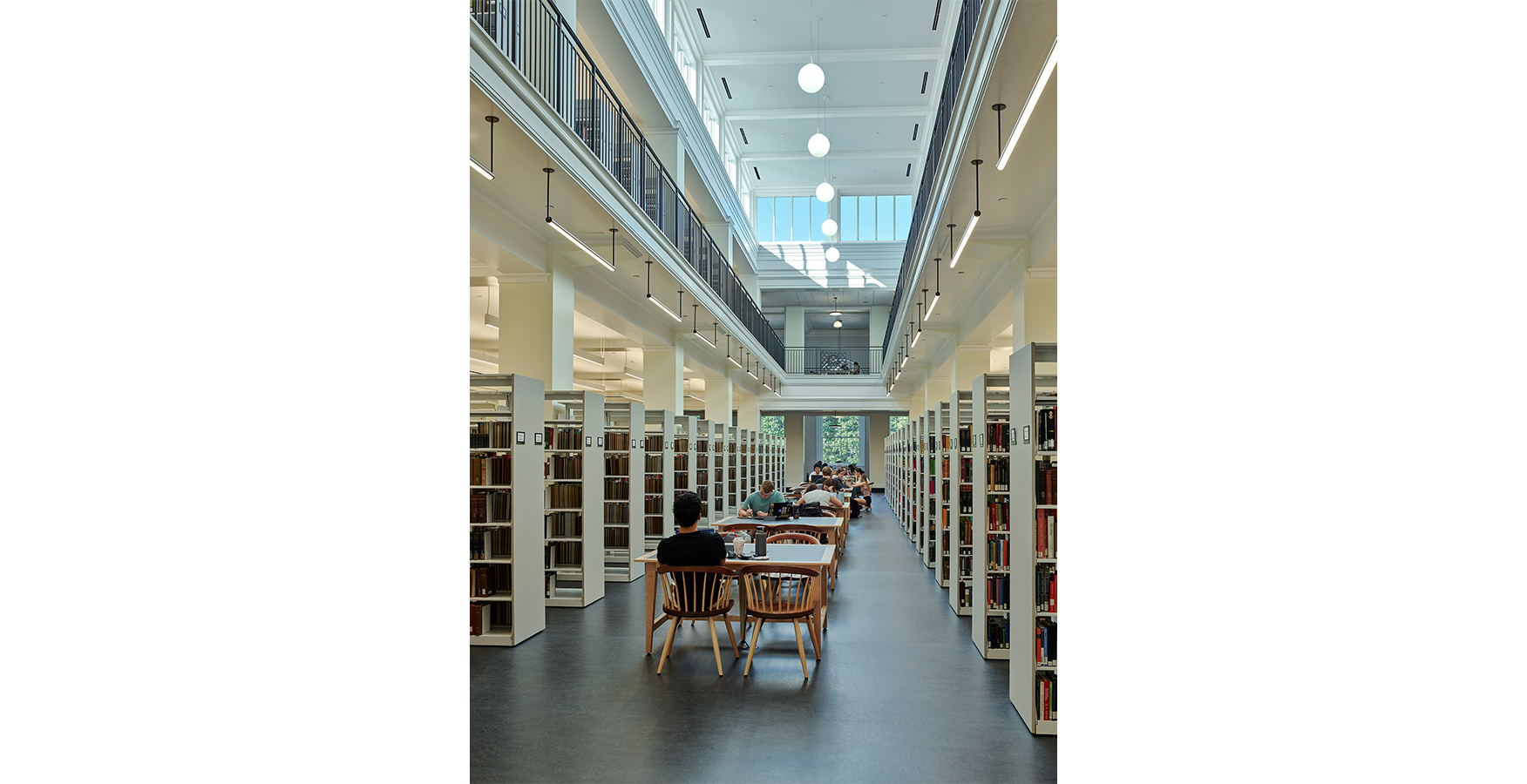 The Edgar Shannon Library at the University of Virginia has been transformed into a modern hub for learning and collaboration. Combining a 100,000 sf renovation of the historic 1938 structure with a seamlessly integrated 130,000 sf addition, the project introduces open, accessible spaces such as reading rooms, skylit study courts, a café, and flexible event areas, and preservation and conservation labs. Seamlessly blending old and new, our design enhances navigation, natural light, and community engagement. Restored historic spaces and upgraded systems ensure functionality, charm, and sense of place. The LEED V4 Gold-certified library supports digital scholarship, collection growth, and evolving academic needs, creating a dynamic space for innovation and discovery.