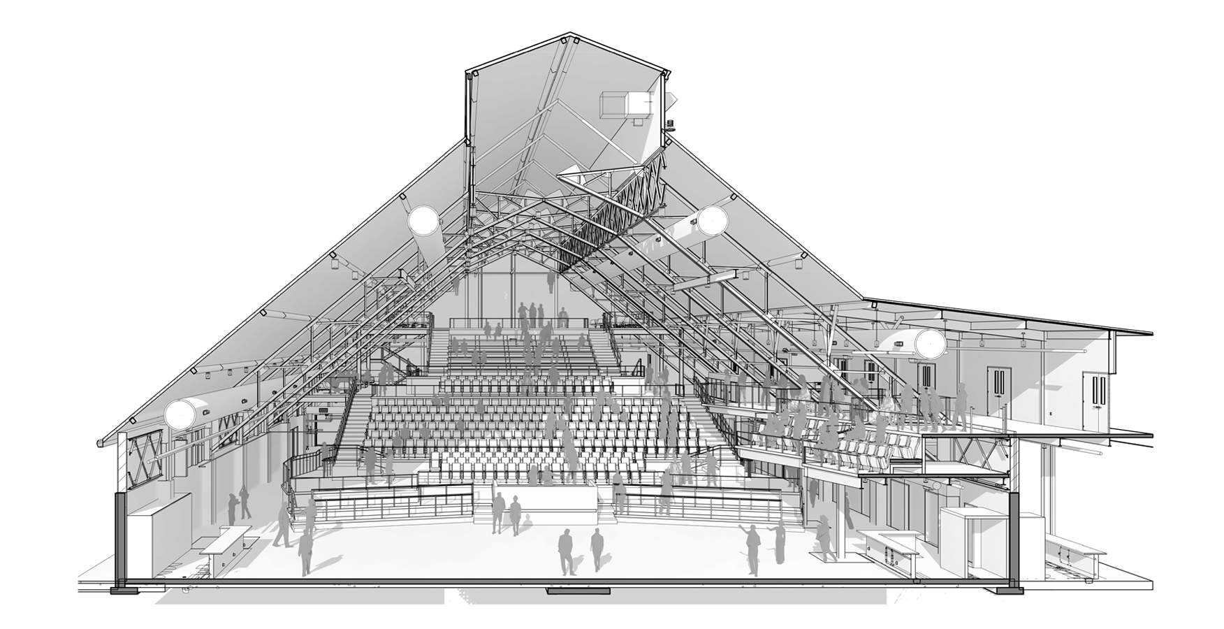 Since the late 1920s, the Morton Salt building has been a Chicago industrial icon. As industries moved away, the Chicago Department of Planning and Development launched the Industrial Corridor Initiative to revitalize these areas. Sold for adaptive reuse, the building was to retain its recognizable Morton Salt sign. Commissioned by Blue Star Properties, HBRA Architects’ design transformed the 58,000-square-foot warehouse into a 3,500-capacity concert venue with grandstand, boxes, refreshment areas, bathrooms, and backstage amenities. The industrial character was preserved, while incorporating flexible stage and seating areas for diverse performances. Private boxes feature exterior balconies for outdoor concerts. Completed in 2023, the new space combines modern concert experiences within a weathered shell, immersing the attendees in Chicago's industrial past.