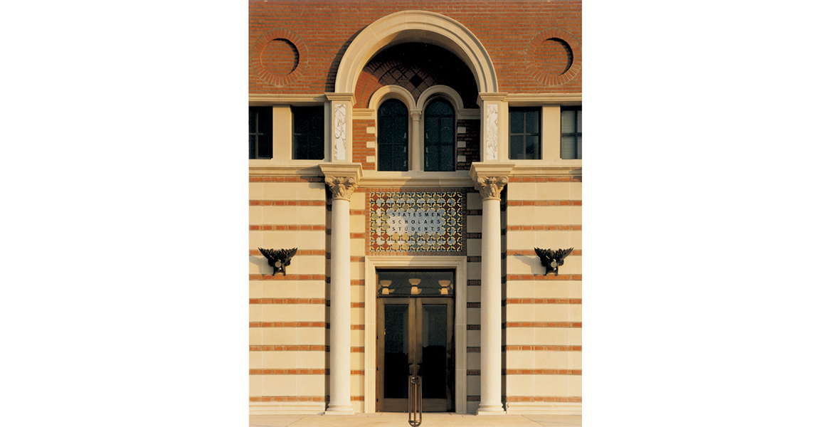 The Baker Institute unifies the Rice University campus through material and formal consistency, grounding the character of this new square in the historic tradition of the original campus. Baker Institute fulfills the client's objectives to reinvigorate the architectural tradition at Rice after a decline in the quality of recent buildings, create a facility that would encourage interaction between its two user groups, and establish the architectural character of a new quadrangle.